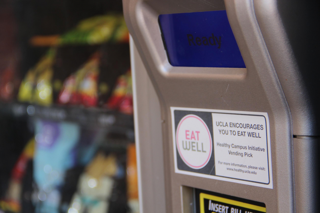 Have you noticed a transition in the snacks and beverages offered in vending machines on campus? What about those “healthier choices made easy” stickers on the outside of the machine and “EatWell” stickers on individual snacks? Did you know that healthier snacks have been strategically placed closer to eye-level? Each of these changes has been deliberately implemented over the past few years by the UC Healthy Vending Working Group (UC HVWG).