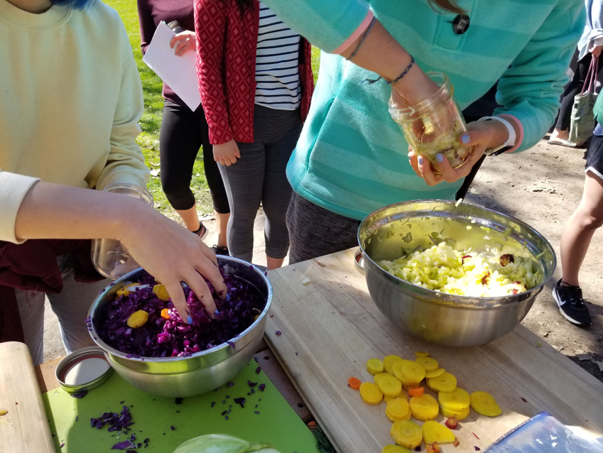 Examining the carbonation and SCOBY at a recent workshop on fermentation.